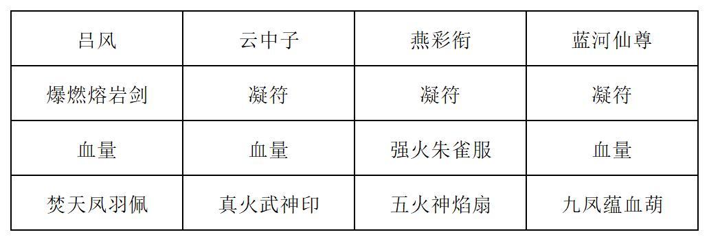 第二种情况是蓝河仙尊回收化刃符,此时燕彩衔打出焚元蓄威术、焚元蓄力诀和战意诀(4),云中子打出百转叠浪诀(2),蓝河仙尊打出化刃符和无相凝水诀,中子打出三清化水符和玄冰化刃符,吕风复制玄冰化刃符并打出,此时就不会缺水了。