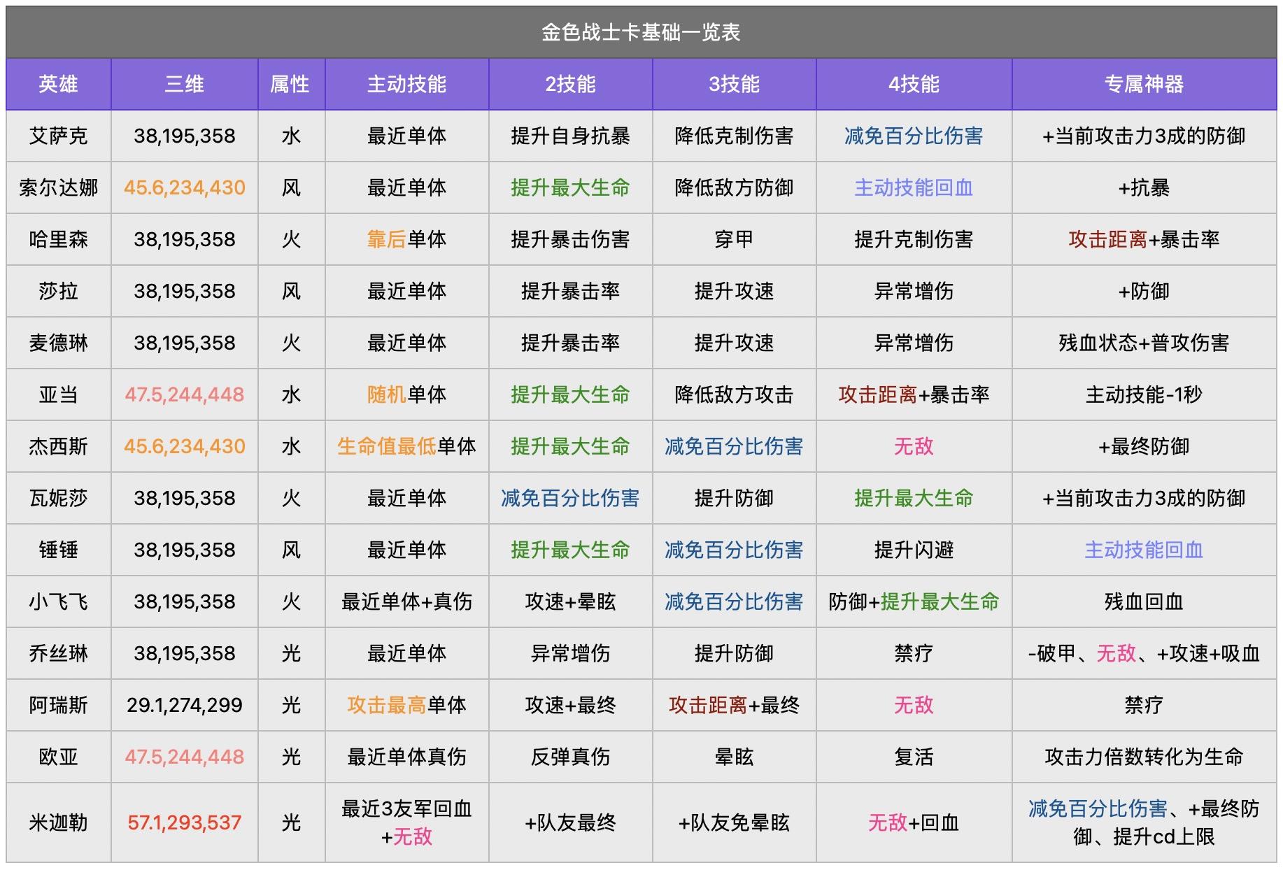 做表的目的,是提醒我们,除了光之外,还是有很多强力的战士英雄的,可以随时看看;