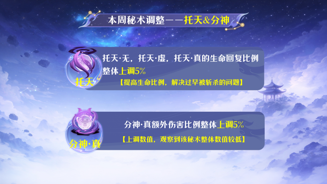 ● 托天·无,托天·虚,托天·真的生命回复比例整体上调5%。