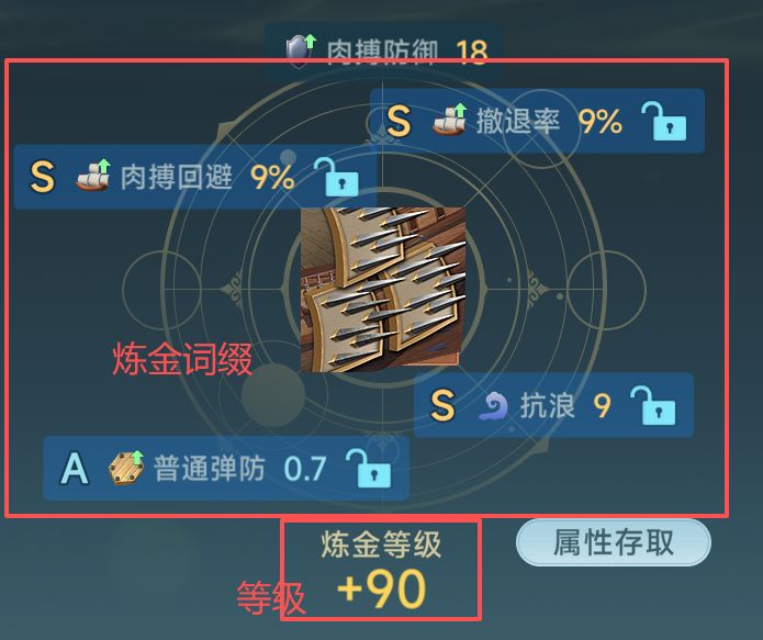 词缀的属性也会根据炼金的等级来计算,例如:同样的S级词缀撤退率,40级炼金的尖刺屏障撤退率只有4%,90级炼金的尖刺屏障是有9%的撤退率的,所以这个属性的比率刚好是炼金等级*0.1%