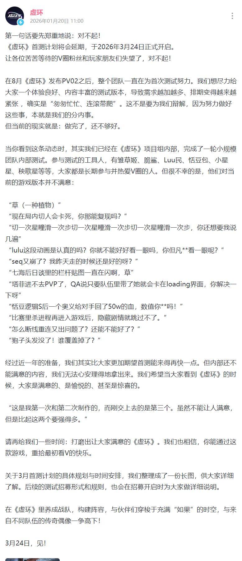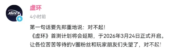🔥《虚环》官宣首测延期:真要完美,还是遇到“大问题”?