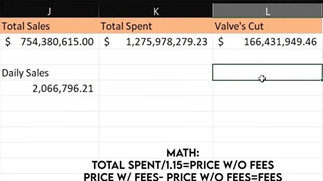 同时,Steam社区市场也为Valve贡献了可观的分成收入,玩家在该平台上完成了7.54亿件物品交易,Valve从每笔交易中抽取15%的手续费,获得了约1.66亿美元的收入。