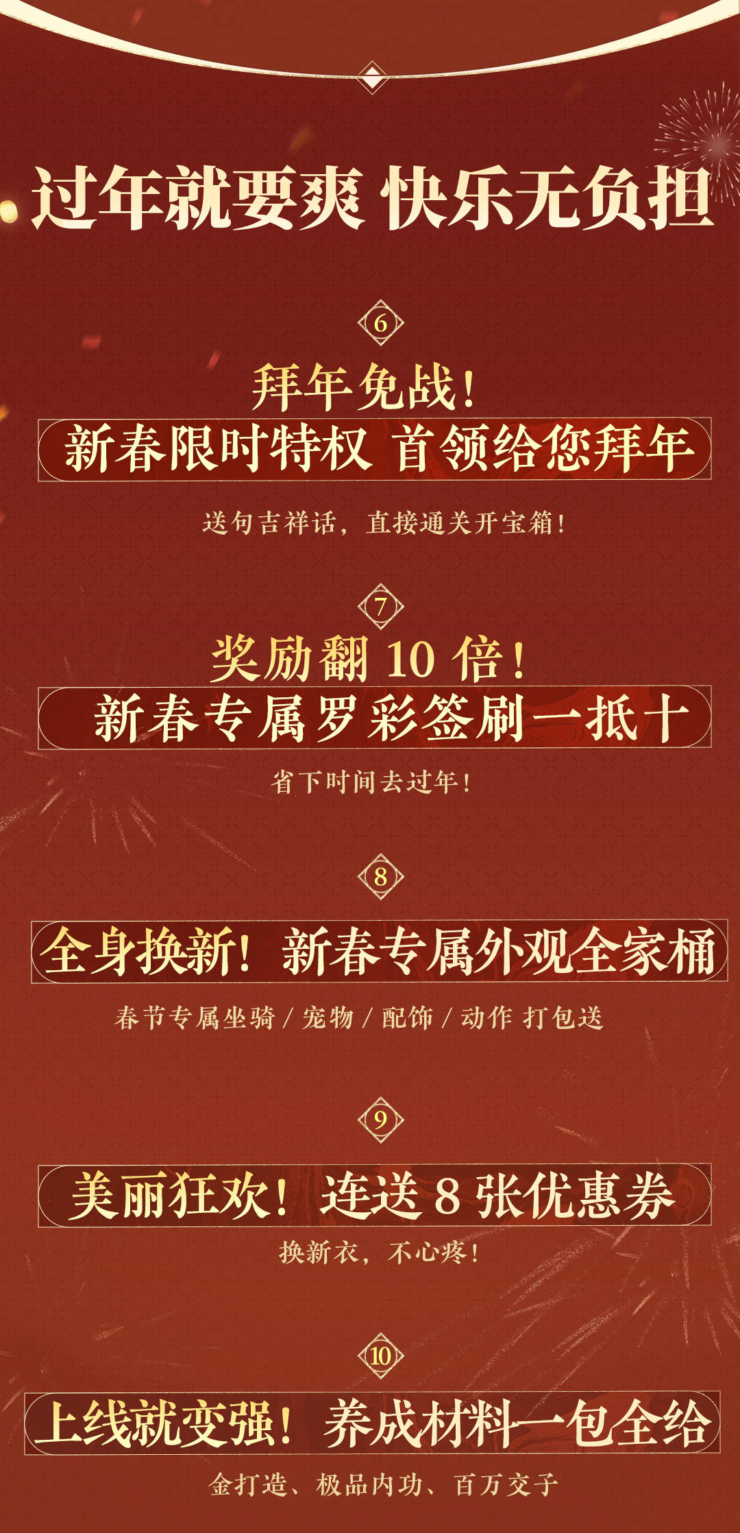 更详细的福利清单与领取指南、超有年味的春节庆典、超欢乐的版本更新内容,敬请期待信使后续爆料! 这个年,咱们回家过!