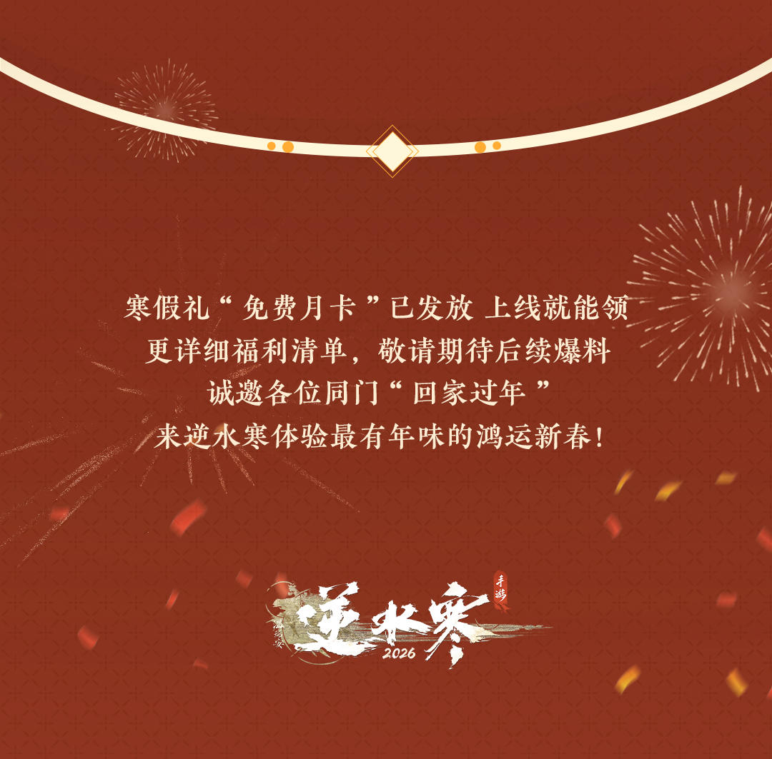 而免费月卡仅仅是逆水寒鸿运年的开胃前菜,真正的硬菜来了!2026年春节,逆水寒想为您找回久违的“理想年味”! 十大福利年货已备齐,只待各位同门回家入席,共赴这场人间惊鸿!