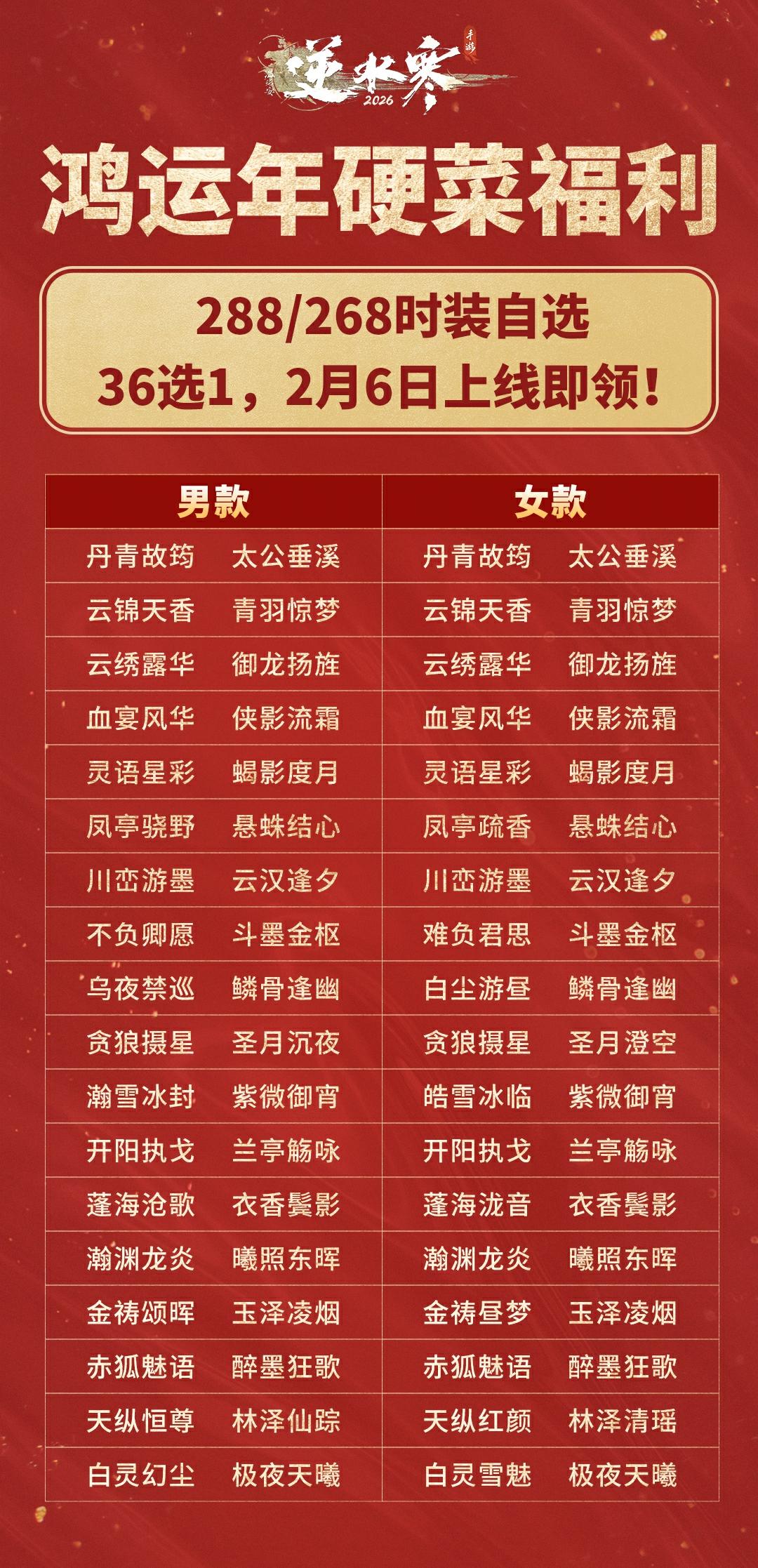 具体288/268自选清单如下,大家想好2月6日上线领哪一款了吗!