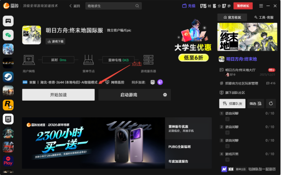 1. 使用雷神加速器加速“明日方舟终末地”。