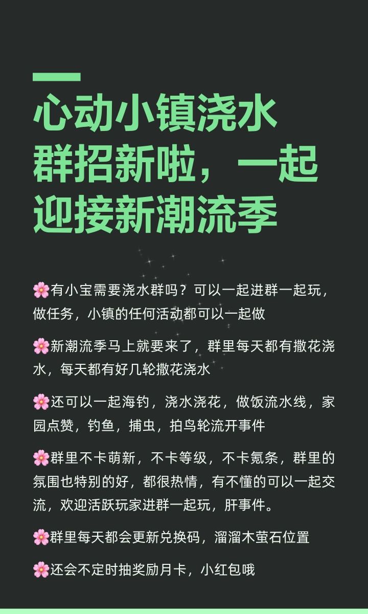 心动小镇浇水群招人啦,一起来迎接潮流季!