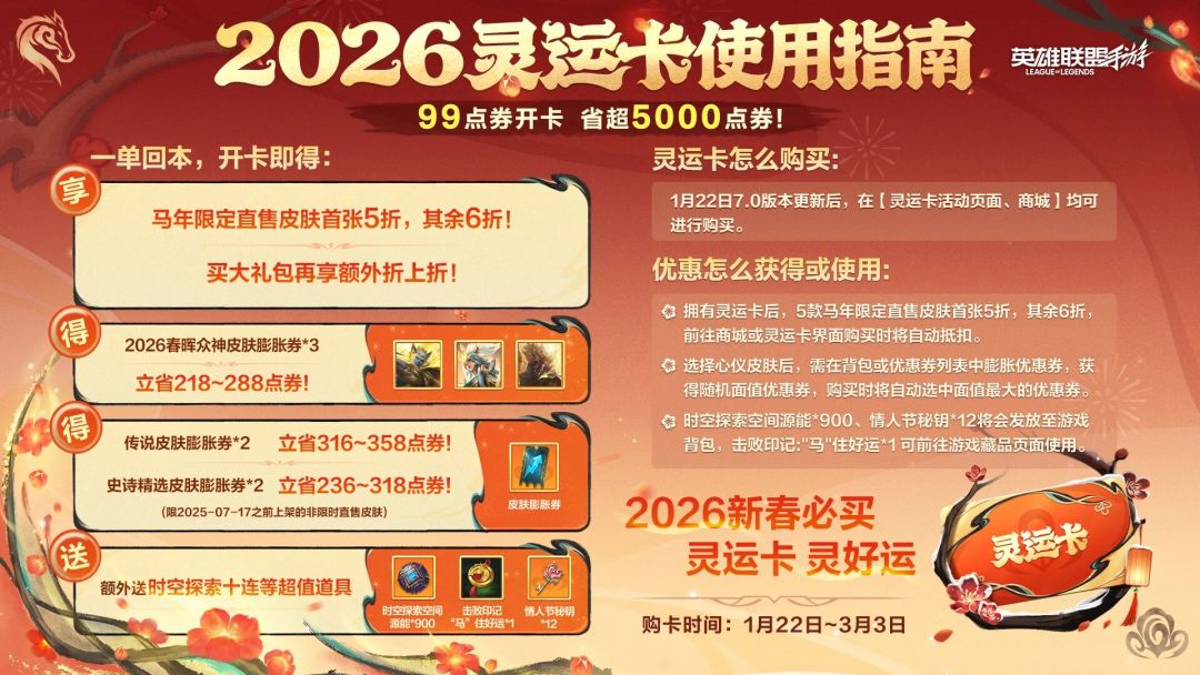2026马年必冲福利来啦~1月22日-3月3日活动期间,99点券开卡,可省超5000点券!开卡即享硬核福利。