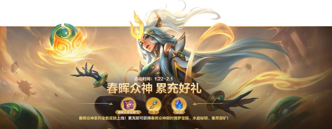 春晖众神系列2026全新皮肤1月22日登场,累充得好礼~