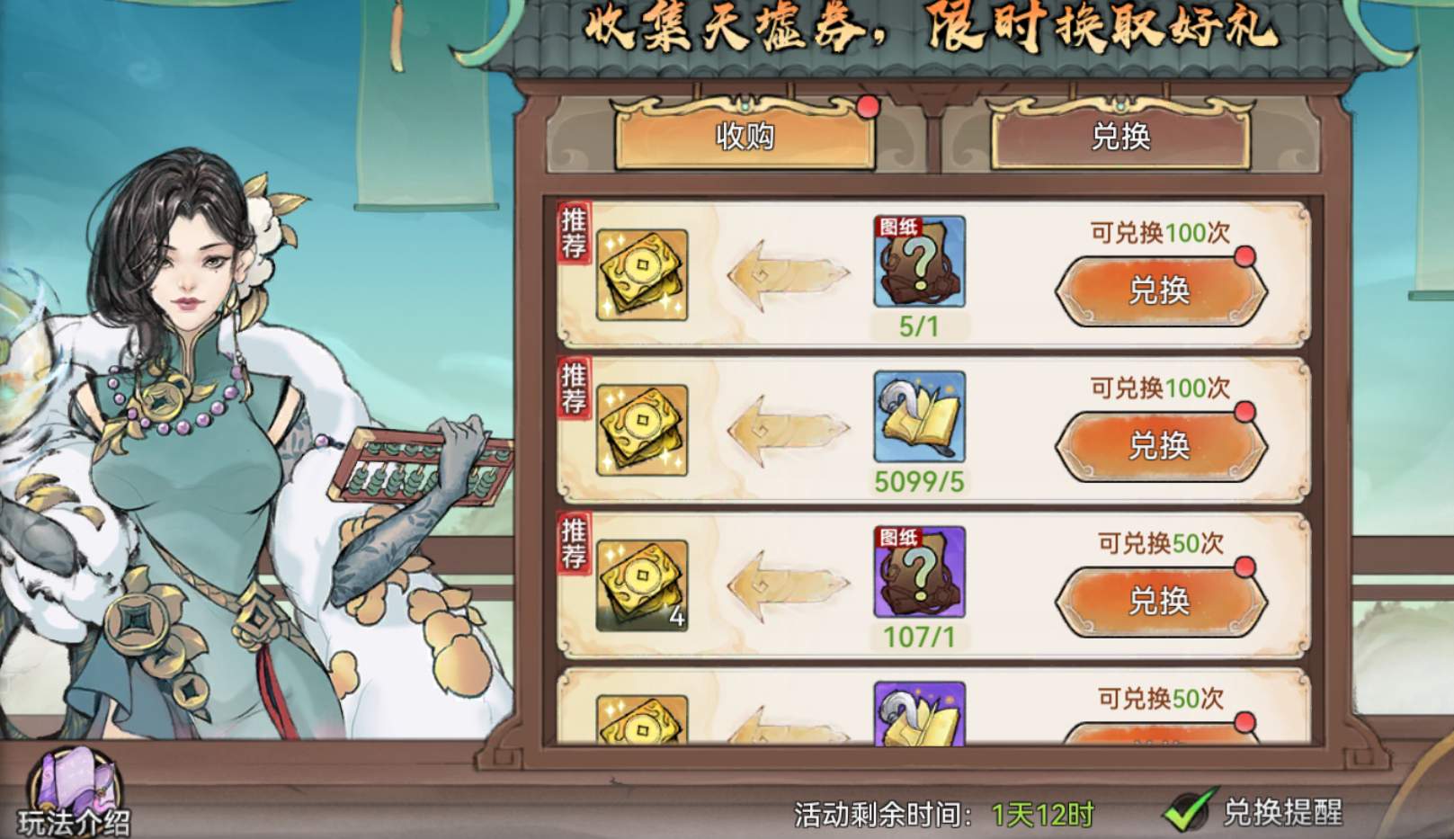 祖师可将满星古宝碎片等用不到的道具兑换成天墟券,并用获取的天墟券兑换洗炼灵液、蕴灵古井-建筑图纸等祖师需要的机缘异宝。