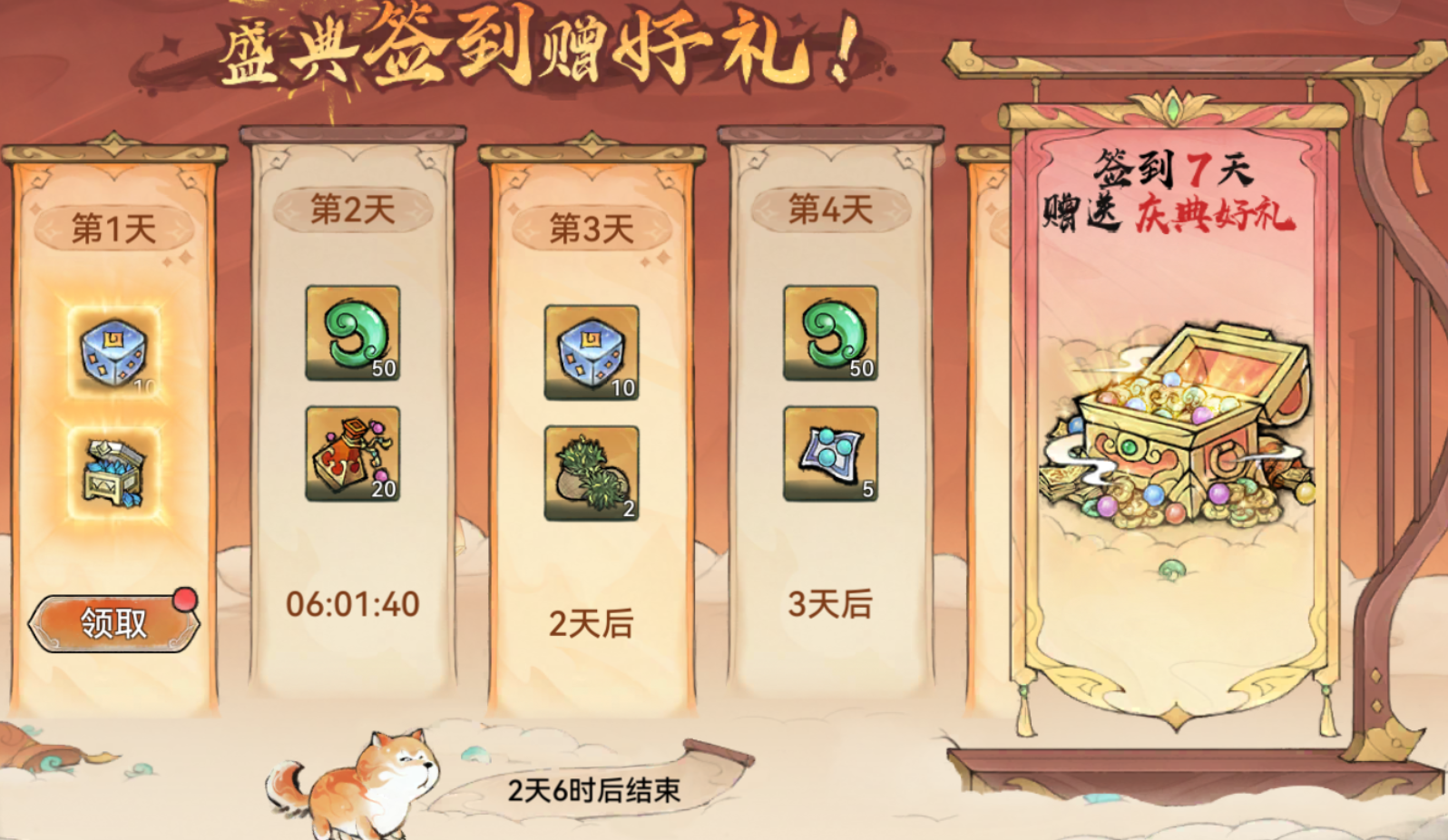 活动期间,祖师完成签到任务即可获得星河宝骰*30、许愿币等道具奖励。
