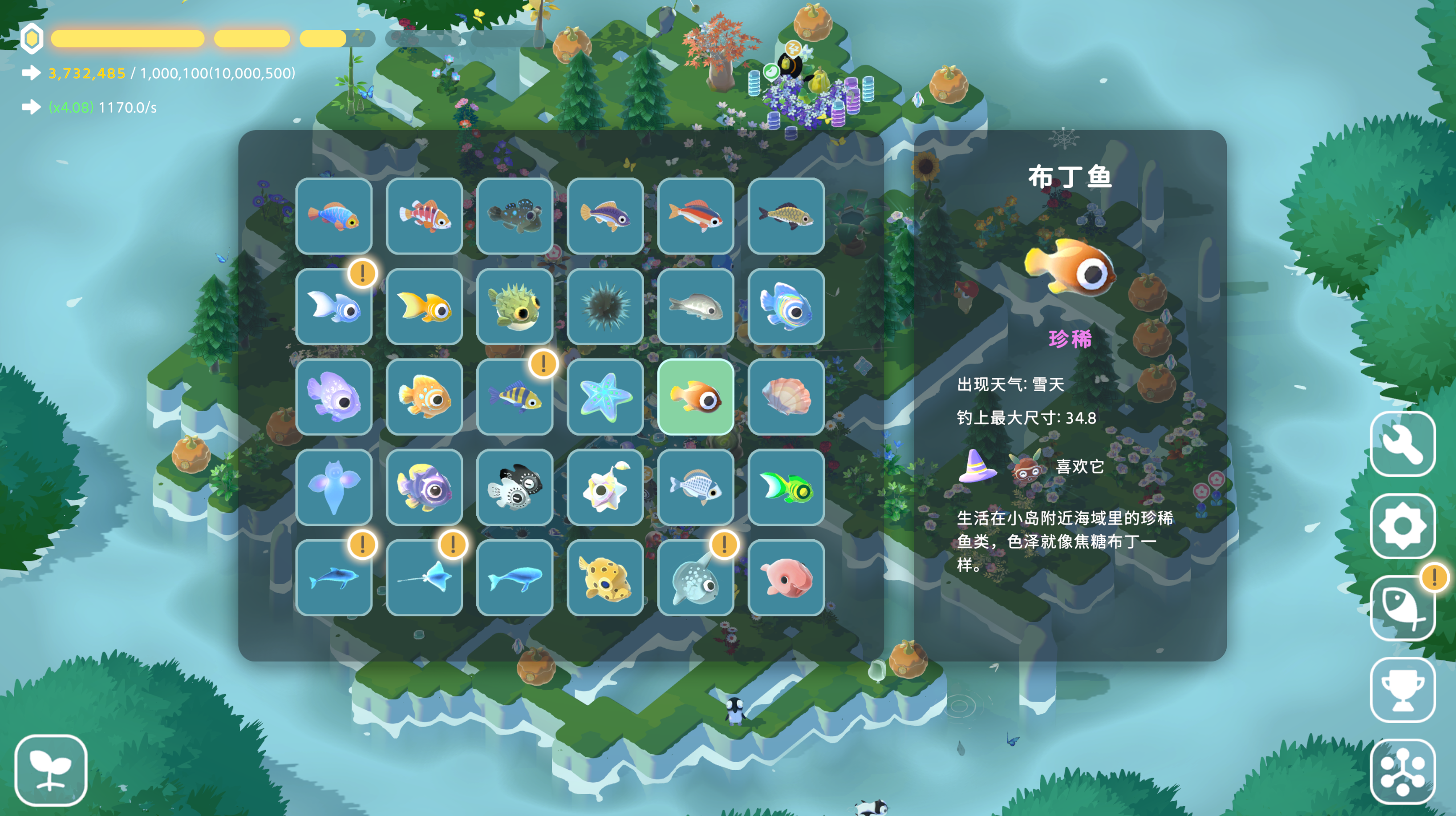 增加了更多种类的鱼类,以及全新的“岛屿装饰小生物”,让你的小岛充满生机。