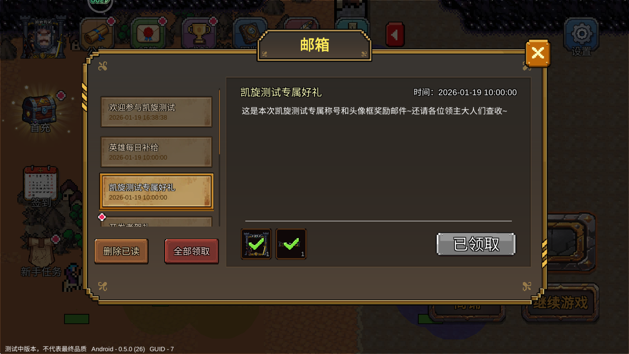测试期间登录游戏,福利将自动发放至您的邮箱,点击领取即可,且永久有效。