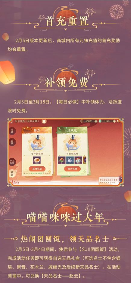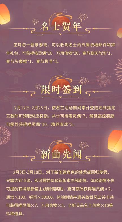 # 版本将于2月5日上线!小麒麟率先为使君大人带来一波福利揭秘,使君快来一睹为快~