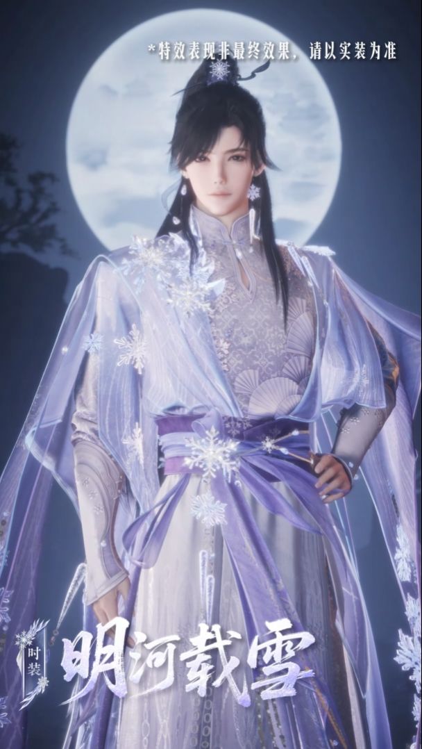 本周即将上架的全新套装【明河载雪】正取意于此间景致。此外,还有全新发型【寒英】、全新「天志垂象」武学特效【青翼垂天】同步上架——