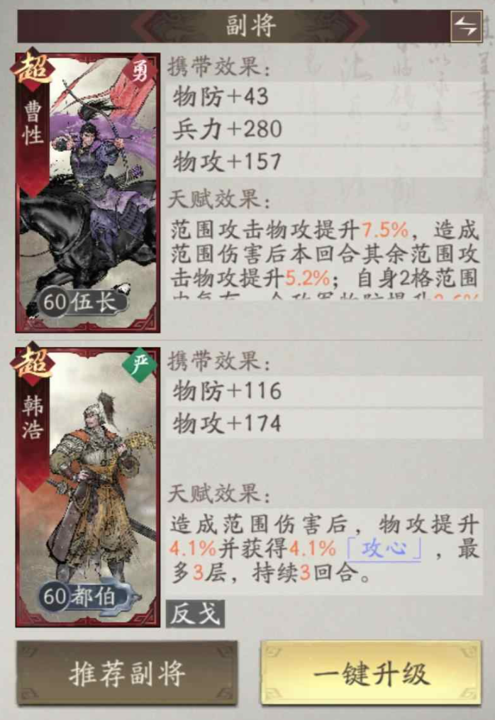 阵容搭配也很灵活,专属副将曹性虽然泛用性一般,但对吕布是绝对适配,能进一步强化AOE伤害和生存。除此之外,韩浩的物攻增益、蹋顿的续航,都能和吕布完美契合。军势方面,还能搭曹操、关羽、张辽激活专属效果,不管是当主C还是外挂输出位,都有一席之地。