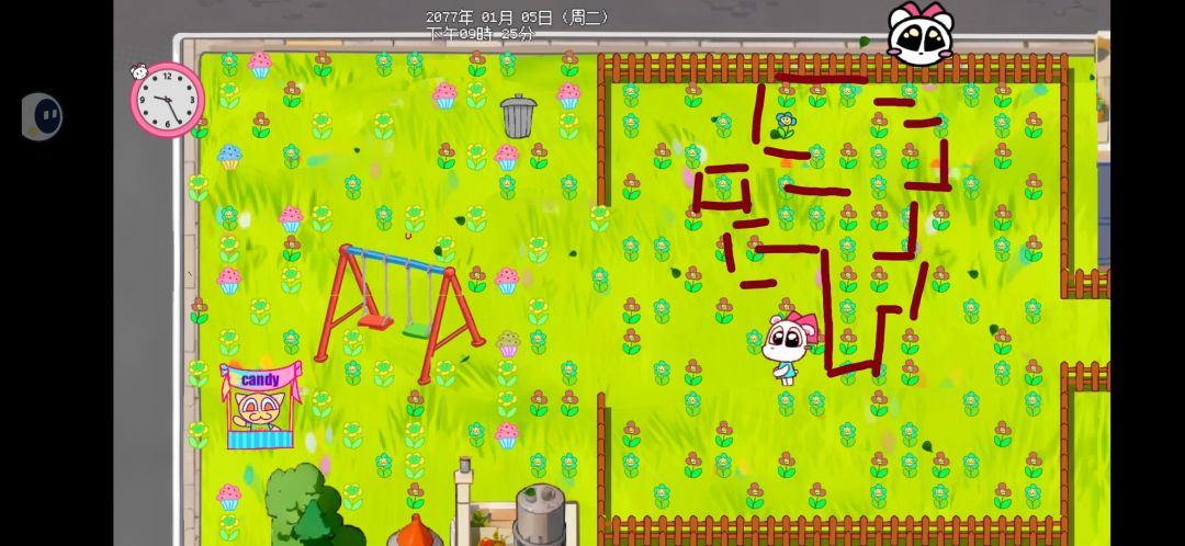甚至还有空气墙这一存在!(一周目粉兔子的初始点位那边)(最后一张图片——我已经用红色笔迹大致圈出)(也可能不是空气墙,而是花朵儿太壮了 将我挡住QwQ? )