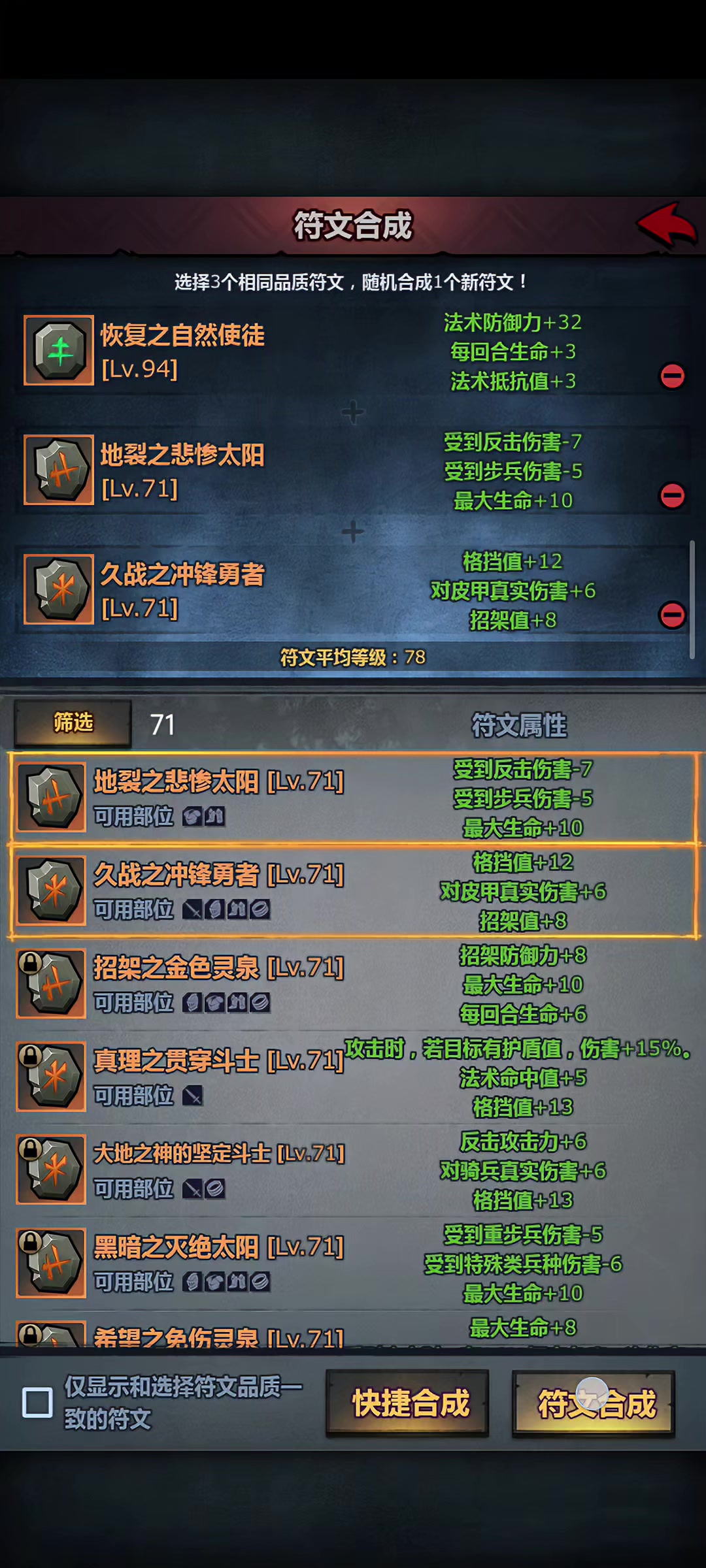 像凤凰这种没有噩梦Boss的符文可以考虑77级锁合,