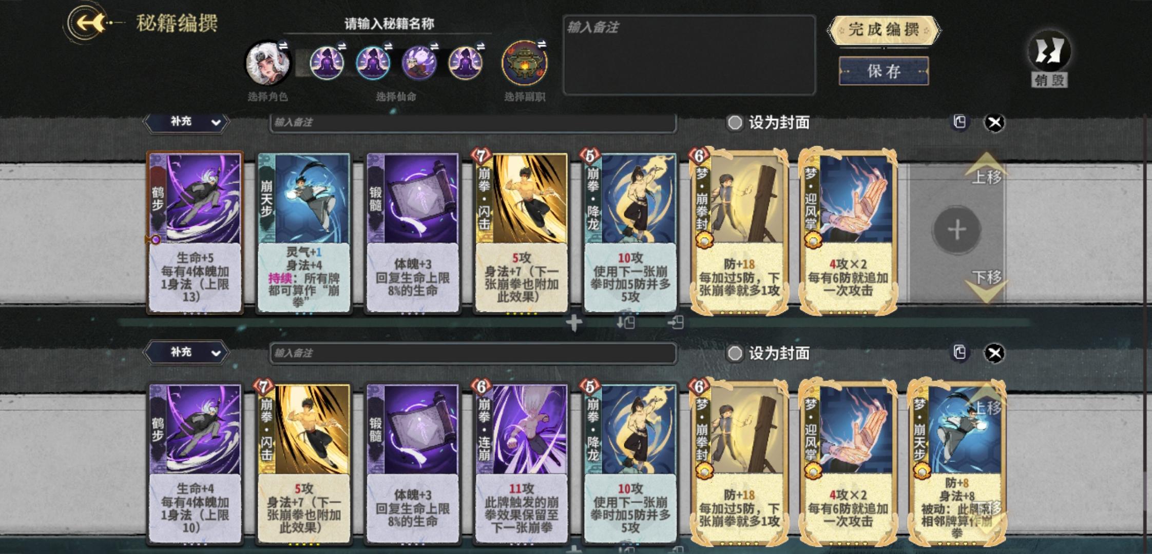 第二个牌组身法够30可把崩拳连崩换掉。