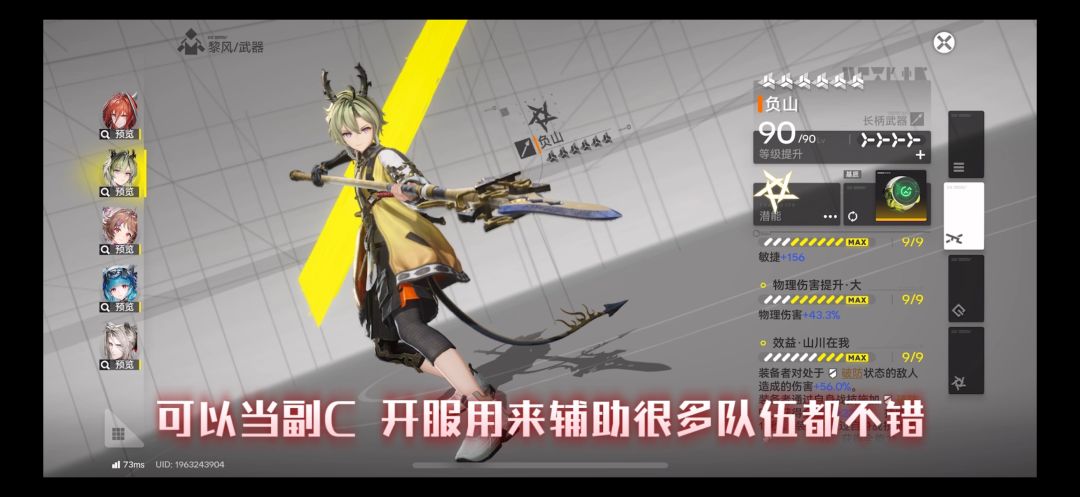 骏卫 黎风:物理输出角色 目前可以和主角队一起搭配 用起来也很不错