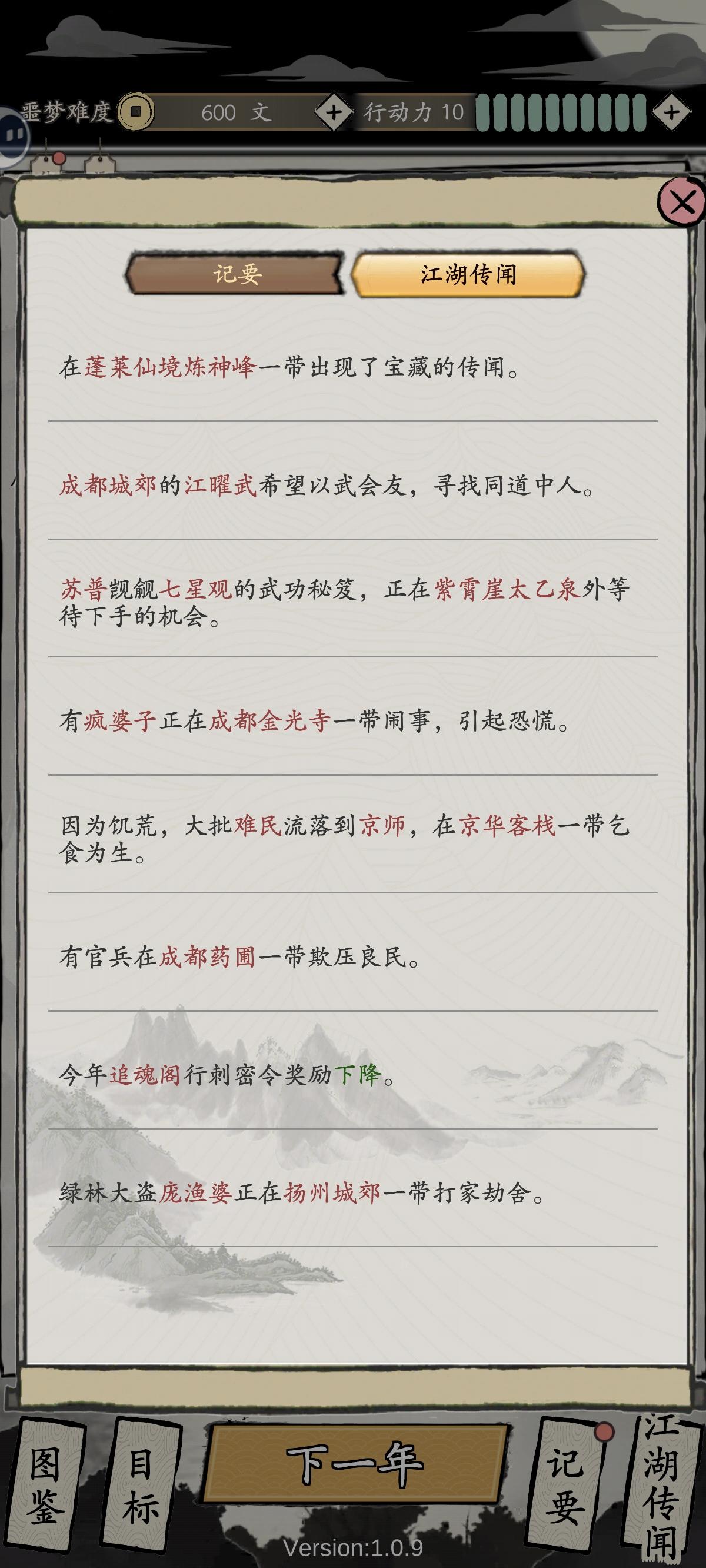 为什么不用第六条江湖任务。这是一个细节,因为第6条江湖任务奖励23点侠义值,会导致我们的侠义值为+13。因此将导致我们下一年需要至少5点体力才能达成-80侠义值(招募任千殇的前置条件)!!!前期的每一点体力都很重要。尽量别浪费。
