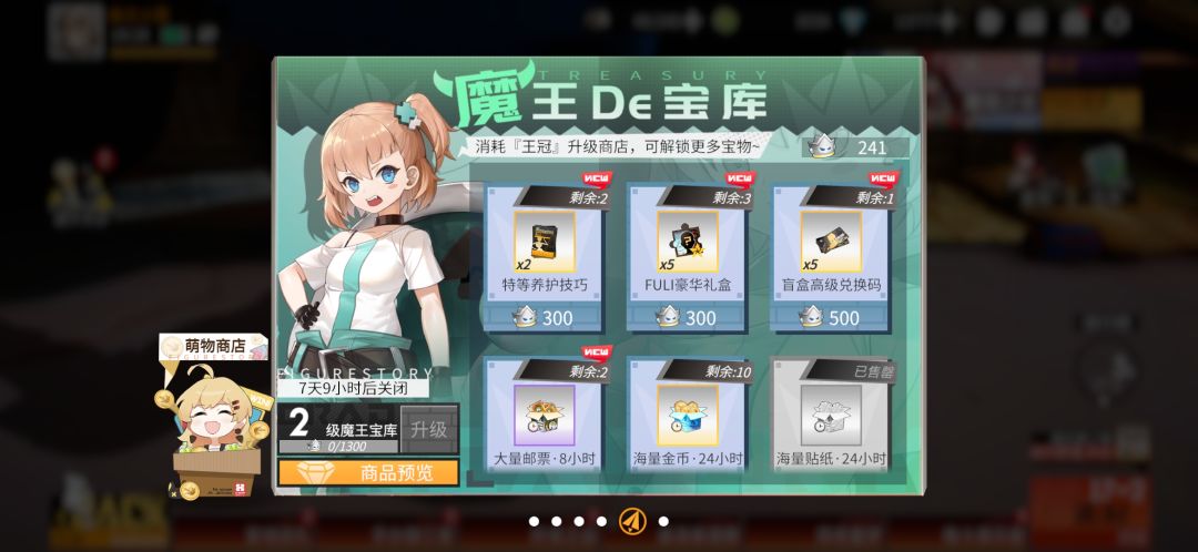宝库分析:本次【魔王DE宝库】采用了升级机制,只有消耗掉一定的王冠才能获得更高级的奖励,这就让玩家不得不在低级宝库花费资源购买一些没必要的资源,才能升级到高级宝库,变相增加了玩家获得高级奖励的王冠消耗。