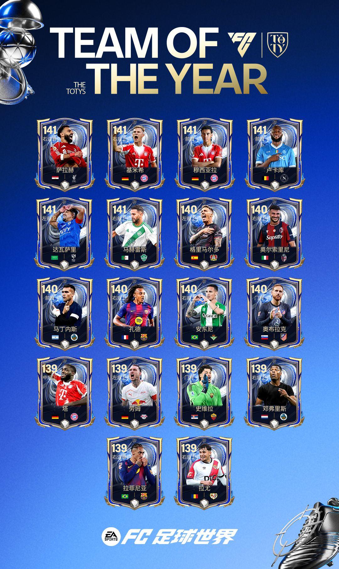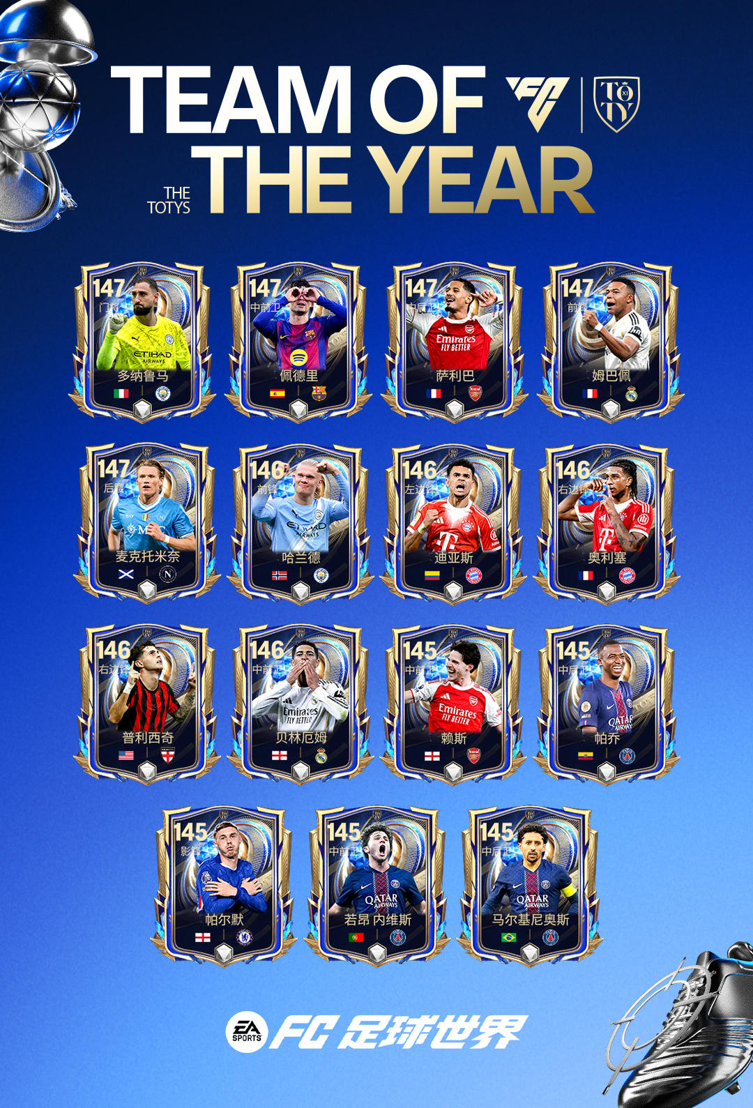 本周四更新后,全新活动:年度最佳(TEAM OF THE YEAR)即将上线。在2025年表现出色的球员们将在本次活动中携手登场,共同缔造年度最佳!