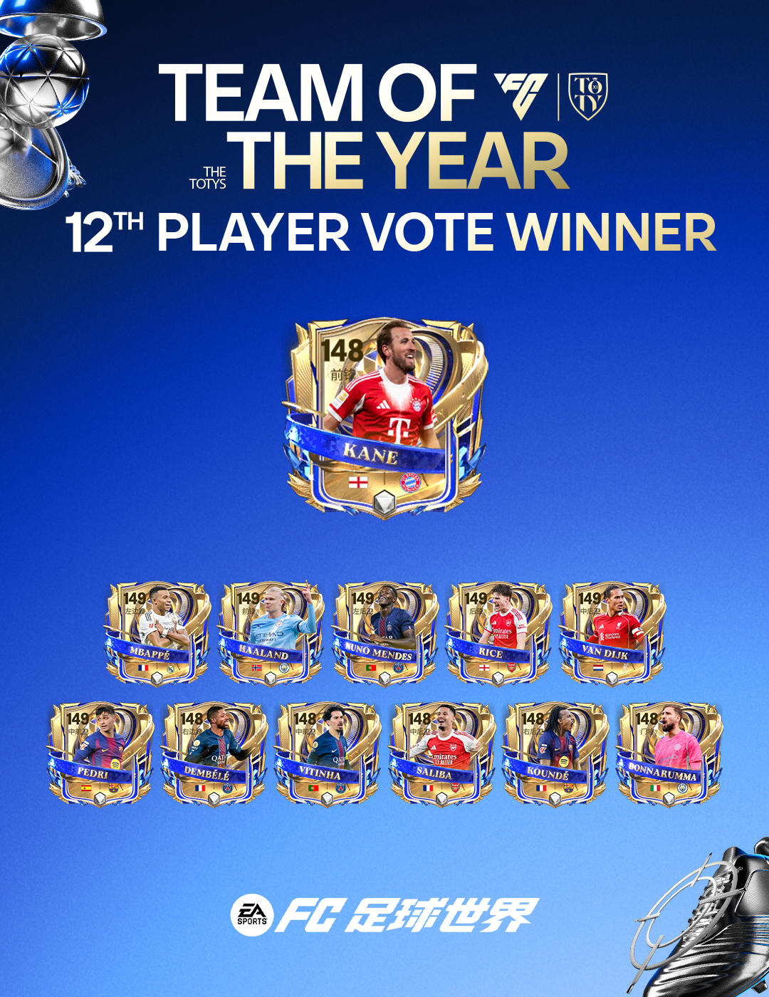 年度最佳阵容第十二人凯恩正式亮相,将加入年度最佳阵容团队,玩家同样可以通过年度最佳阵容球员交换获取。