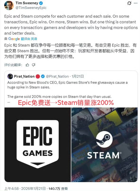1月21号,Epic总裁Tim Sweeney下场发文,暗讽STEAM总裁的游艇和钻石牙齿❗❗❗