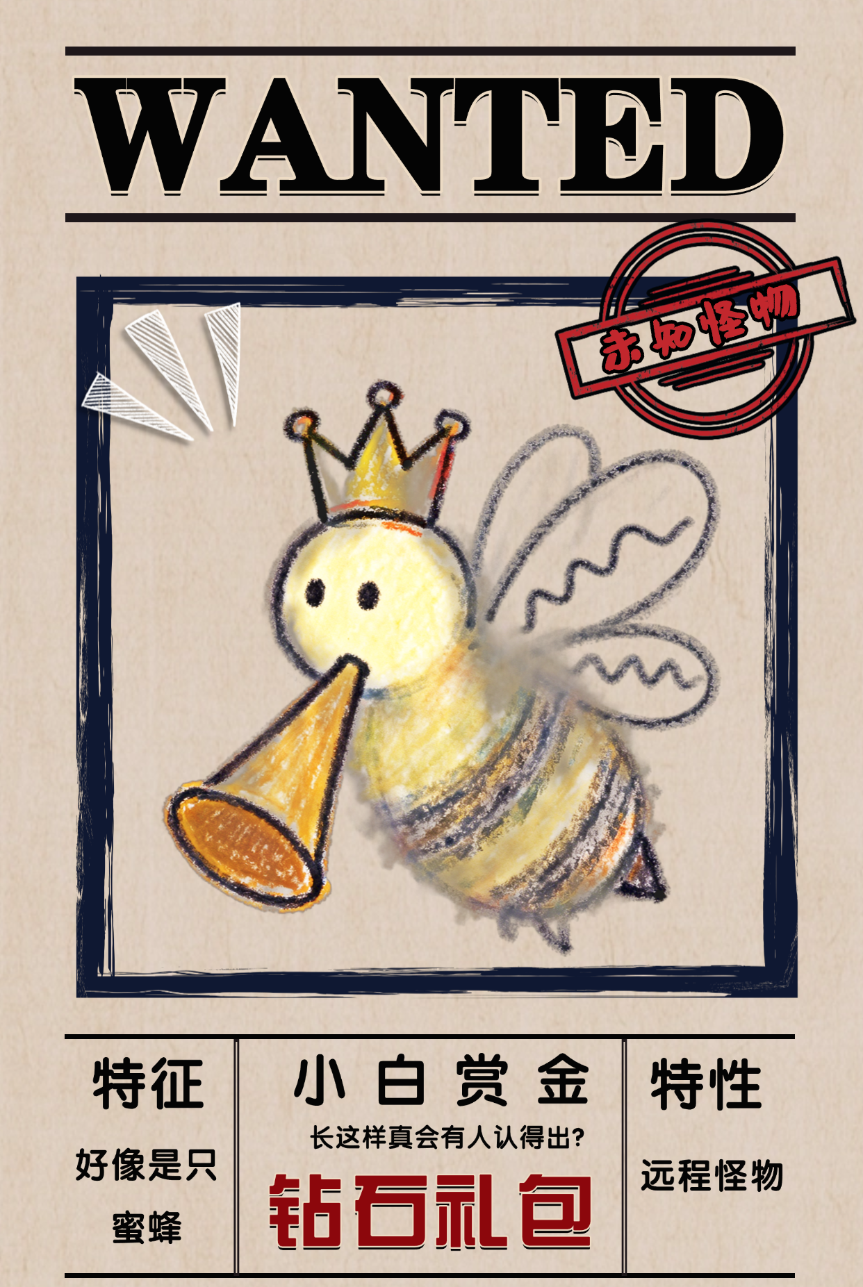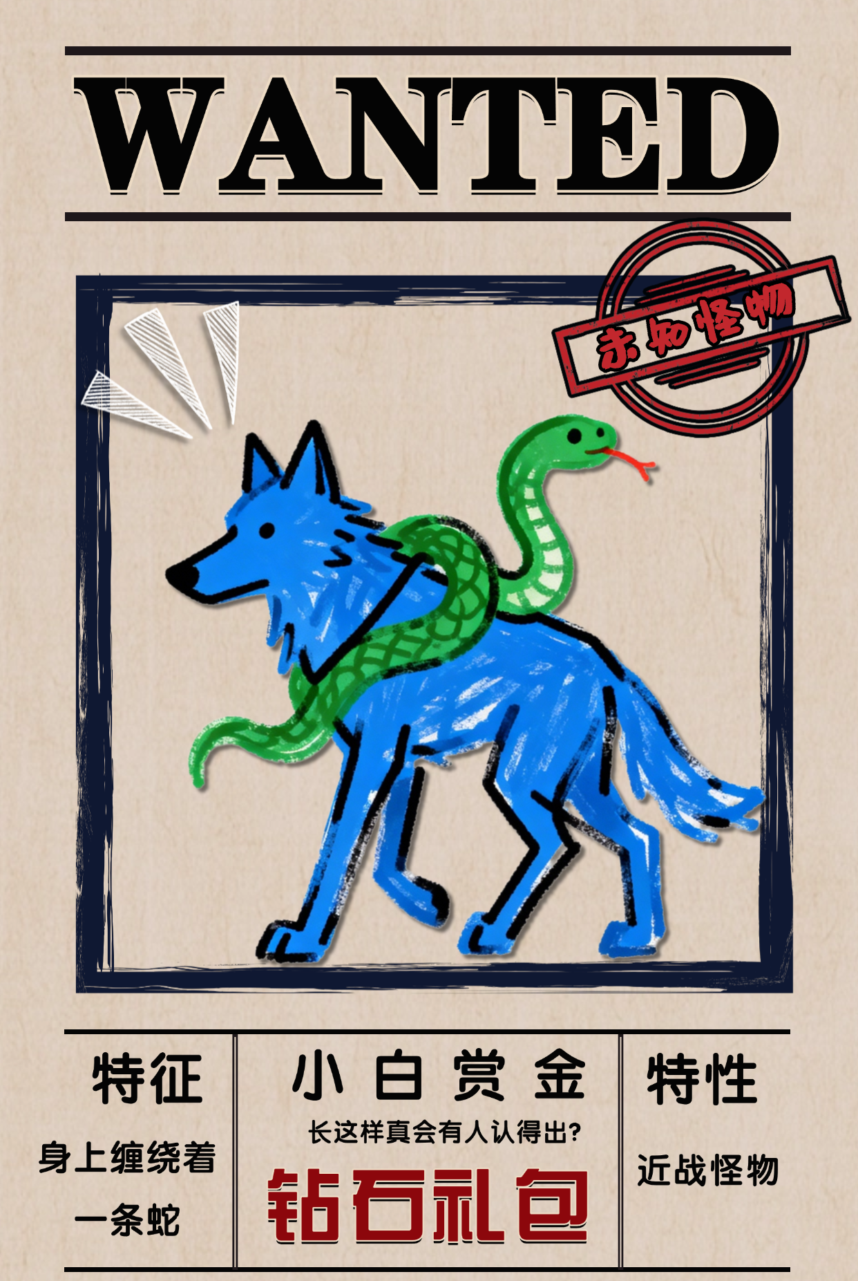 最近常有怪物侵袭农场,为了加强小鸡农场安全,小白特意画了几幅......相似度高达1%的怪物通缉令,诚邀各位见多识广的队长辨别!![[表情_嫌弃]](https://img.tapimg.com/market/images/3b98294830b76e0c70e2ce54eda41ab0.png)