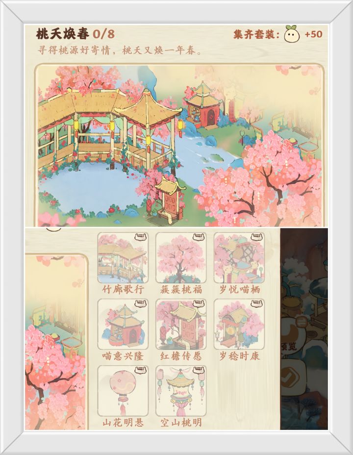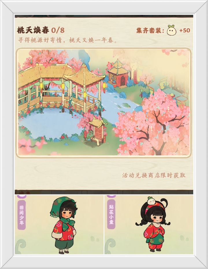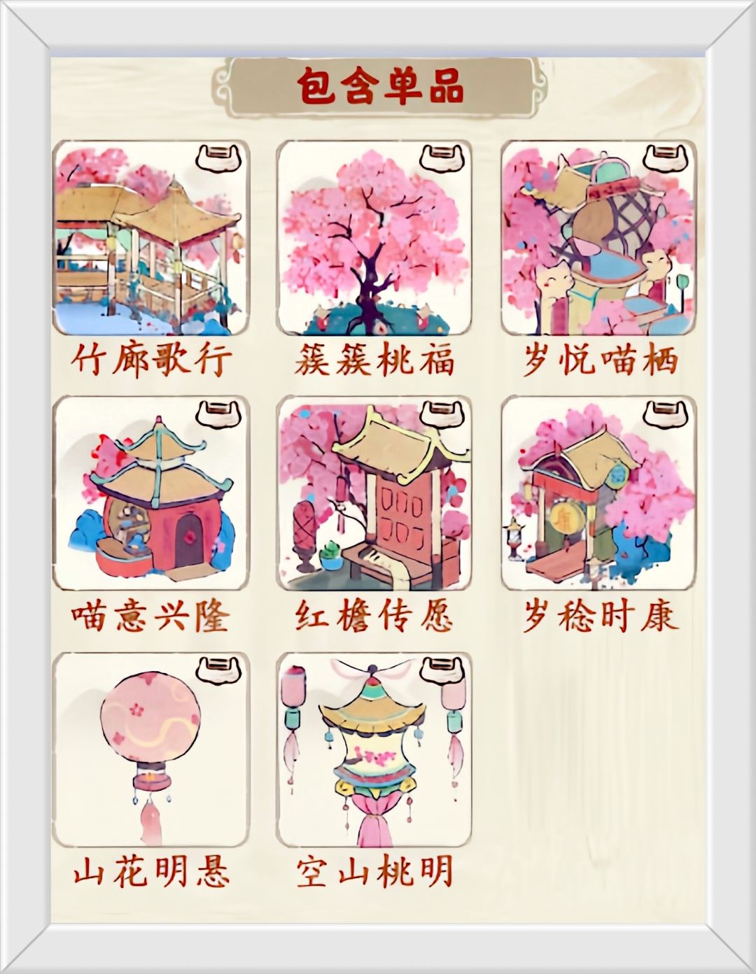 3:活动可兑换返场物品:哥哥和妹妹皮肤、桃夭焕春套装外观(竹廊歌行、簇簇桃福、岁悦喵栖、喵意兴隆、红檐传愿、岁稔时康、山花明悬、空山桃明)。