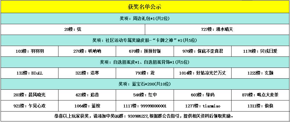 -------------------------------------------------------------(中奖名单)--------------------------------------------------------