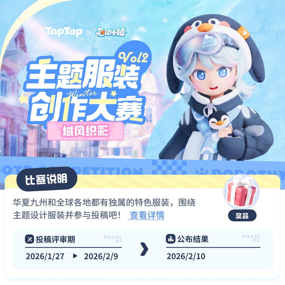 围绕域风织彩的创作主题,上传并分享您制作的原创衣物内容。1月27日前可提前进行创作,1月27日10:00将开启本次创作比赛对应的图集投稿活动,请带话题 #心动小镇域风织彩 ,前往图集活动发布符合征集要求的原创内容即可参与。