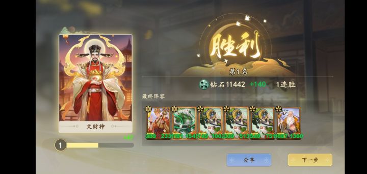 图1实战,我这把三藏和寿星都没有金也少一个大猿神,不知道如果全金成长有多少。