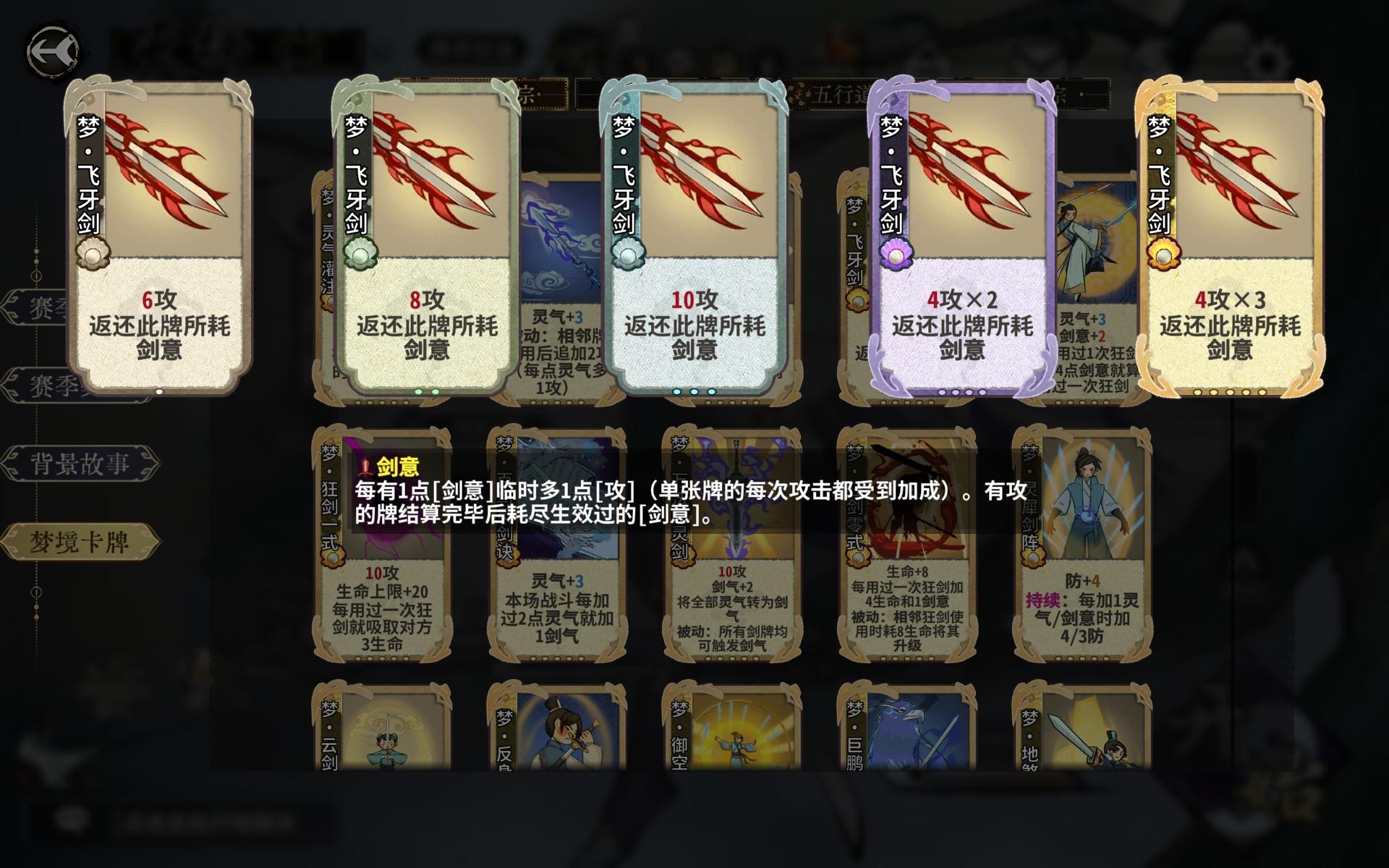 梦飞牙:深蹲卡很少用,破合八荒和护体好用,平时算激荡的下位吧,打完这个再打梦秘剑灵云,这里给到中规中矩