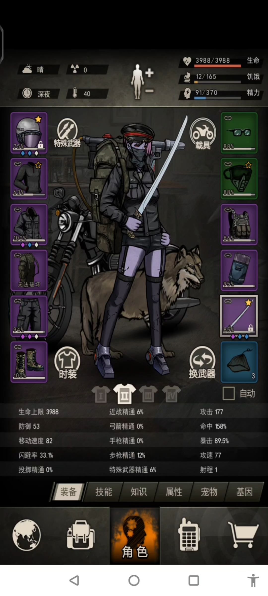 瑜伽健身满级,反应3-8,完骑6精,宠物尽量挑增伤的,带的是双奶(13精,7高)、14快闪、三刀流(14破甲(建议破甲专家稳定破防),13快刀(剁肉爆伤输出高),13重击),带喷火器以及紫燃烧瓶,特殊可以打物质刷(打着打着很快就满了),本人特殊6精投掷0精照打。