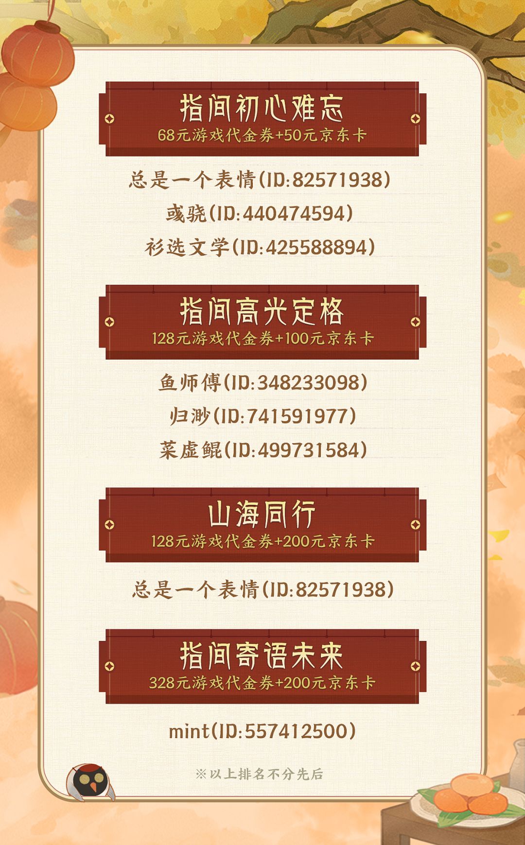 - 领奖提醒: 公示期结束后,小桃姬将另行发布公告说明具体的领奖方式与信息收集流程,请各位获奖星主持续关注官方动态。