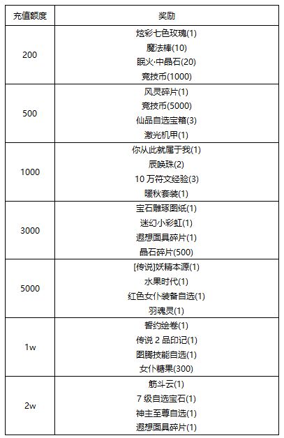 活动期间内充值达标可获得相应奖励以及低档位所有奖励!