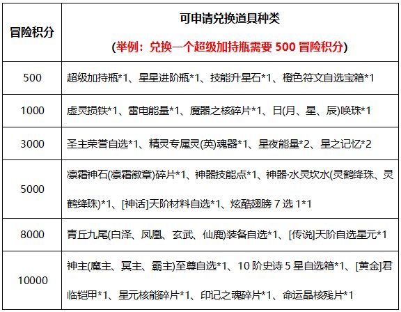 兑换方式: 活动结束后,需联系客服,提供角色信息及想要兑换的奖励,客服核实积分后,手动登记后发放奖励。