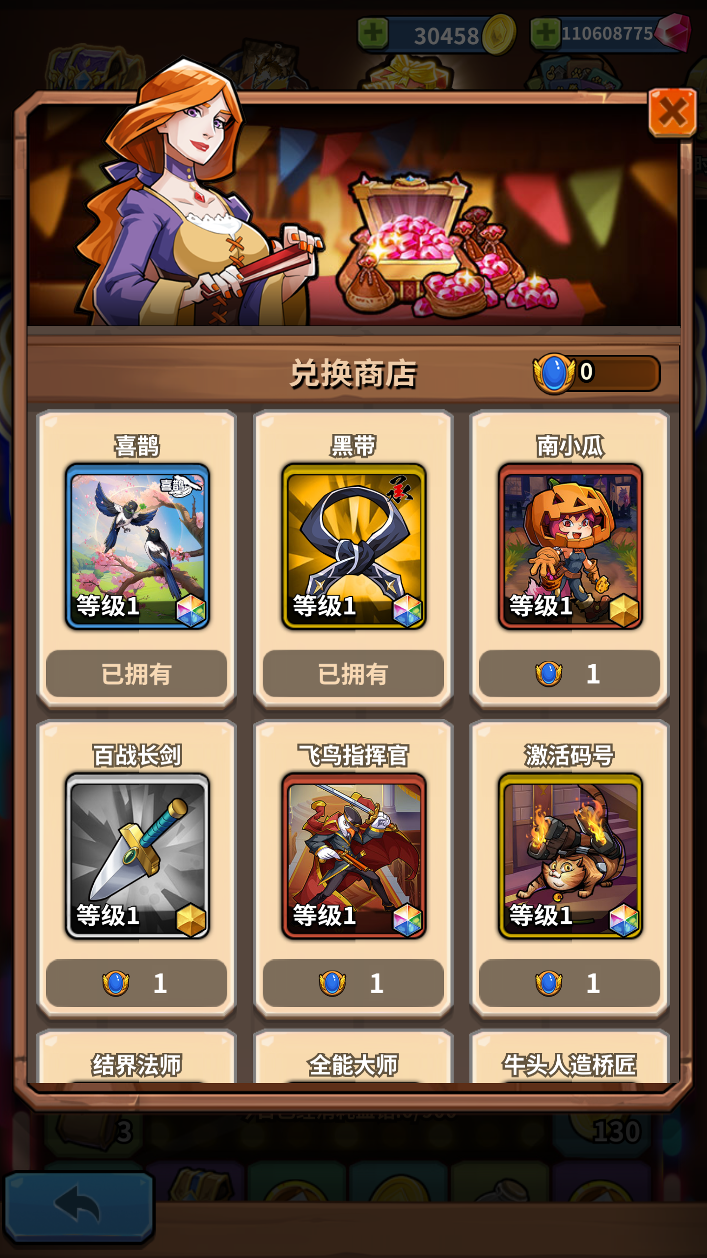 典藏宝箱(王权):有机会开出卡牌、卡包和材料,内含老兵Milo、新时代 猿吉、功夫大师、莲花仙女、吸血伯爵。