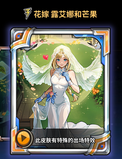 礼包内容:皮肤【花嫁 露艾娜和芒果】,珍兽宝石*2,命定的花嫁头像框*1。