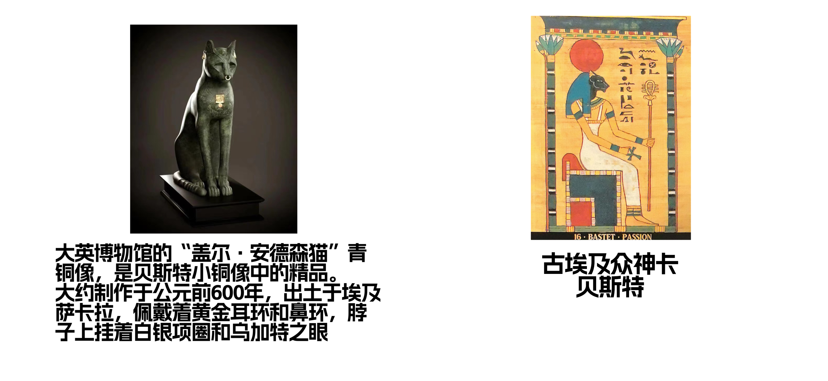 贝斯特,猫首人身,是下埃及守护神,古埃及神话中兼具守护健康、驱散疾病职能的女神,能够护佑家宅、抵御疾病邪灵,是家庭与生育的庇护者,象征治愈与好运,后世埃及人们也铸造了许多贝斯特小铜像。