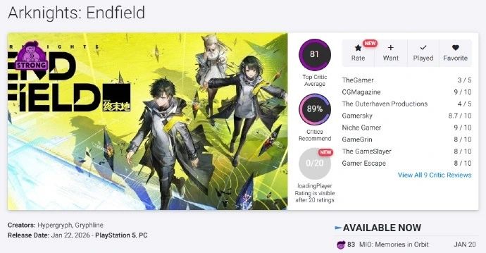 终末地媒体评分解禁 获外媒认可
