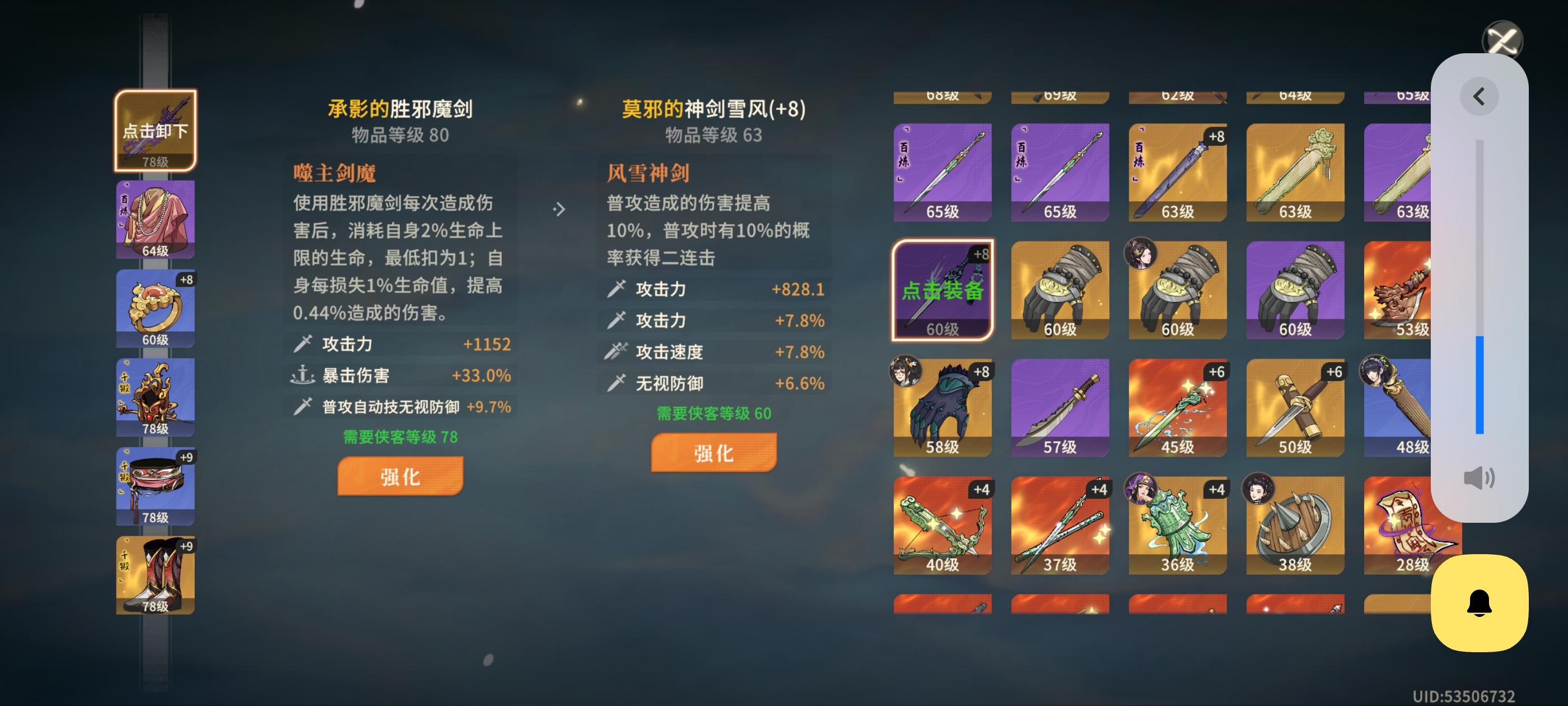 理论上胜邪+黑刹强满后能多一千多基础攻击伤害会比雪风剑高