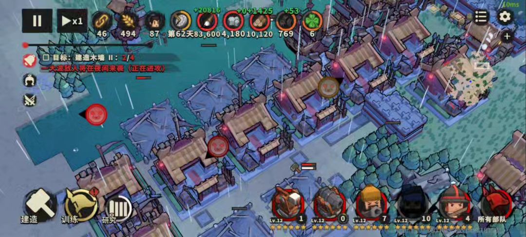 5.关于刷墙,最好留有1000多乌来刷四级墙。后期每天快结束的时候,我们暂停,然后找个空旷的地方,把所有资源都去建造四级墙,轻轻一拉就能做一大排,不用建成,等到当天结束到下一天,直接拆除所有墙返回资源,这样的目的就是为了腾仓库,让当天的资源能成功入库,也就是不溢出资源。新的一天就把前一天的城墙给拆了返回资源,等这天快结束了,同样暂停刷墙。