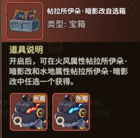 自选箱:火风与水地两种元素形态可自选。