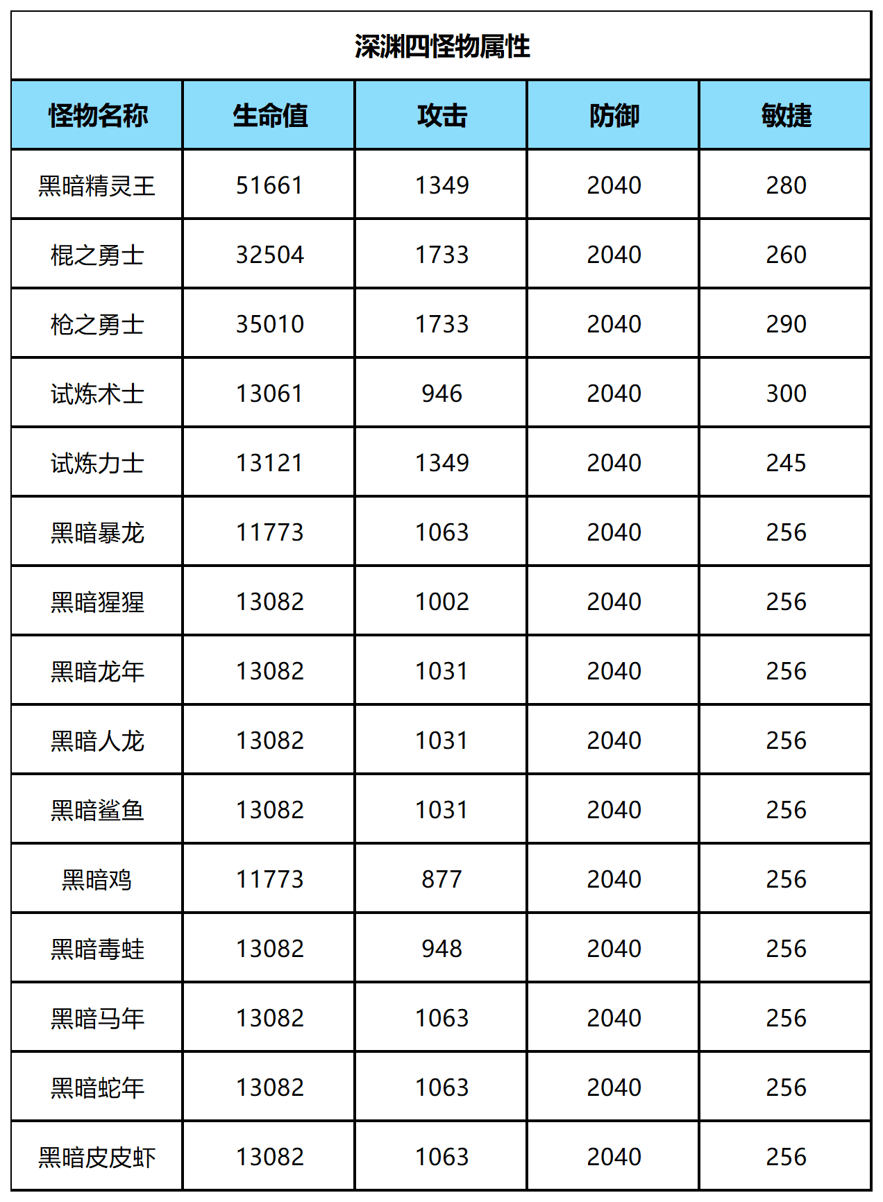 精灵王试炼-深渊四层怪物介绍