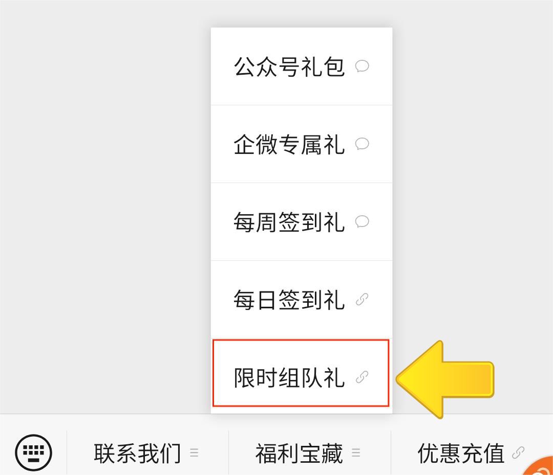 ②:关注《永远的蔚蓝星球手游》公众号,在公众号后台菜单栏点击【福利宝藏 - 限时组队礼】按钮,同样方便快捷。