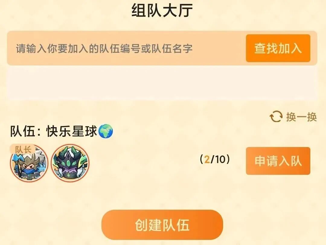 公开的队伍会显示在组队大厅中,若国王暂时没有队伍,可在【组队大厅】中快速申请入队~