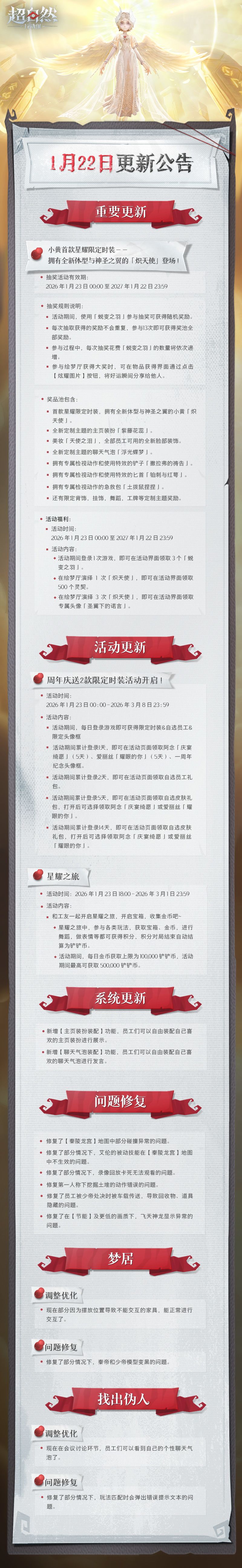 1月22日更新——周年庆送2款限定时装!小黄-「炽天使」即将登场